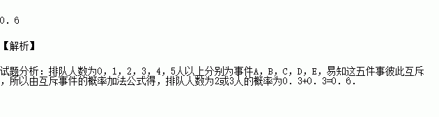 排队人数 | 0 | 1 | 2 | 3 | 4 | 5人以上 |