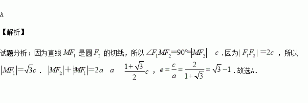 为圆心作一个圆恰好经过椭圆中心并且交椭圆于点