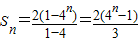 (2)把(1)中求出的an的通项公式代入到中,确定出bn的通项公式,由,利用同底数幂的除法法则化简后,得到其值为常数,确定出数列{bn}为等比数列,且常数为公比q,令n=1求出首项b1的值,由公比q和首项b1的值,利用等比数列的求和公式即可求出数列{bn}的前n和Sn