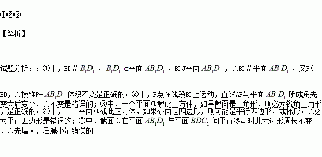 截正方体得到一个六边形(如图所示),则截面