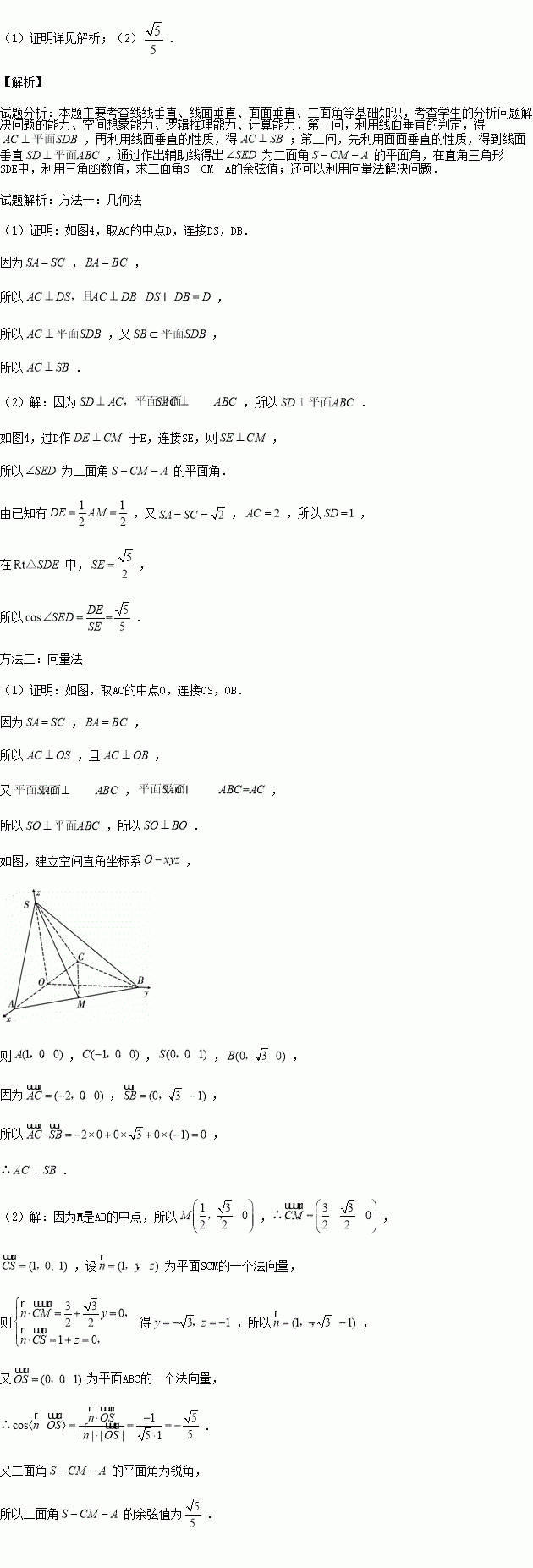 (2)求二面角S一CM-A的余弦值.