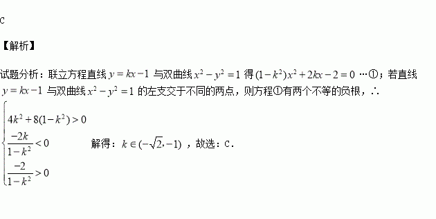 直线与双曲线的左支有两个公共点,则的取值范围是( )