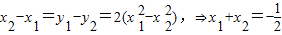 变形得到x1+x2 =-,代入2m=(y1+y2)-(x1+x2) 进行运算.