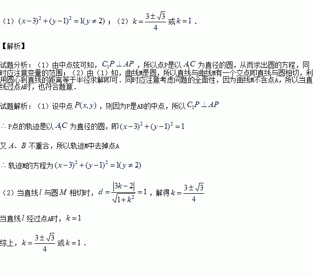 (1)求线段AB的中点P的轨迹M的方程;