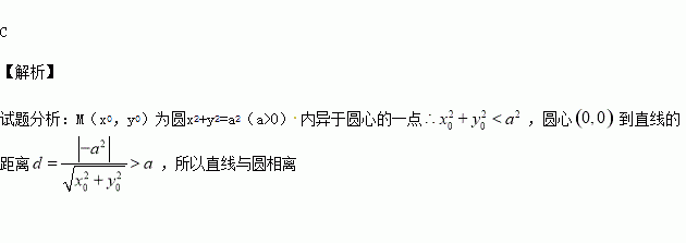 内异于圆心的一点,则直线x0x+y0y=a2与该圆的位置关系是( )