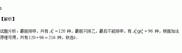 某电视台的一个综艺栏目对六个不同的节目排演出顺序,最前只能排甲或乙,最后不能排甲,则不同的排法共有( )