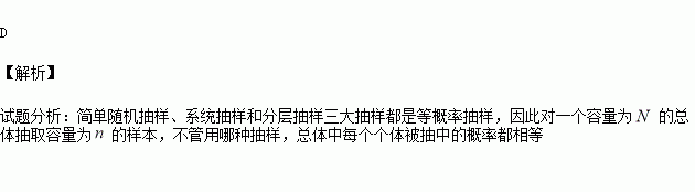 的样本,当选取简单随机抽样、系统抽样和分层抽样三种不同方法抽取样本时,总体中每个个体被抽中的概率依次为