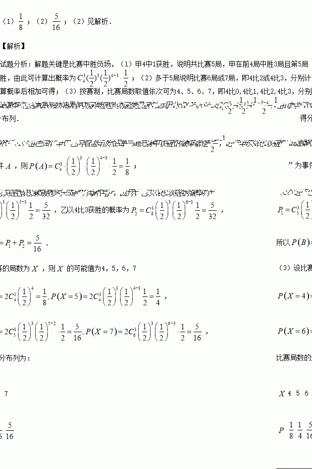 乒乓球单打比赛在甲、乙两名运动员间进行,比赛采用7局4胜制(即先胜4局者获胜,比赛结束),假设两人在每一局比赛中获胜的可能性相同.