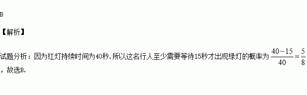 某路口人行横道的信号灯为红灯和绿灯交替出现,红灯持续时间为40秒.若一名行人来到该路口遇到红灯,则至少需要等待15秒才出现绿灯的概率为( )