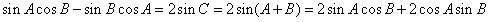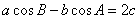 设△ABC的内角A,B,C所对的边长分别为a,b,c,且acosB-bcosA=2c。