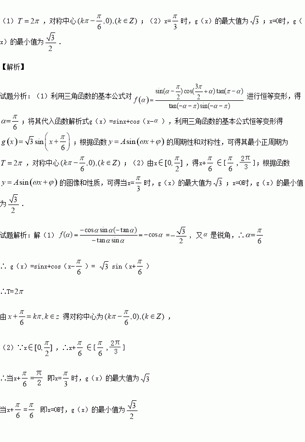 (1)求g(x)的最小正周期、对称中心.