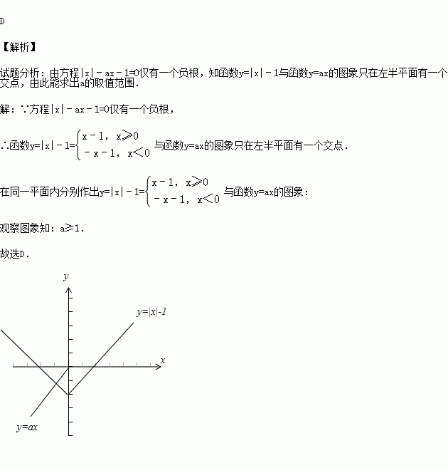 (2012秋•庆安县校级期末)已知方程|x|﹣ax﹣1=0仅有一个负根,则a的取值范围是( )