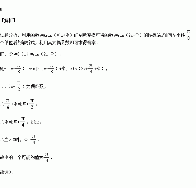 个单位后,得到一个偶函数的图象,则φ的一个可能的值为( )