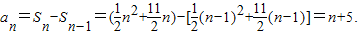 注意到n=1时,a1=S1=6,而当n=1时,n+5=6,
