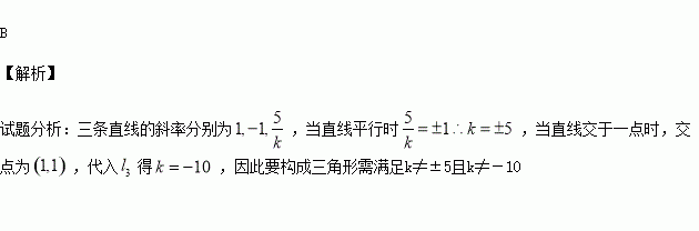 三条直线l1:x-y=0;l2:x+y-2=0;l3:5x-ky-15=0围成一个三角形,则k的取值范围( )