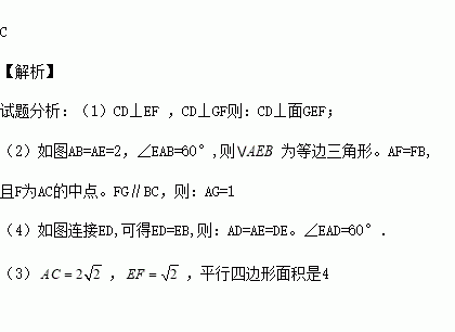 (1)CD⊥面GEF; (2)AG=1;
