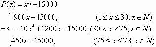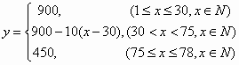 某旅行社组团去风景区旅游,若每团人数在30人或30人以下,飞机票每张收费900元;若每团人数多于30人,则给以优惠;每多1人,机票每张减少10元,直至每张减为450元为止.每团乘飞机,旅行社要付给航空公司包机费15000元.飞机最多乘坐78位游客.
