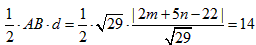 另一方面点C到直线AB的距离为,由于三角形ABC的面积等于14,则