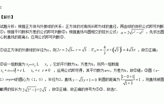 ①棱长为2的正方体外接球的体积为