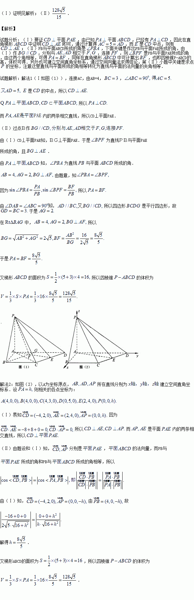 (Ⅱ)若直线PB与平面PAE所成的角和PB与平面ABCD所成的角相等,求四棱锥P-ABCD的体积.
