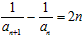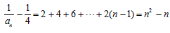 已知二次函数f(x)=ax2+bx的图像过点(4n,0),且f′(0)=2n,n∈N*。