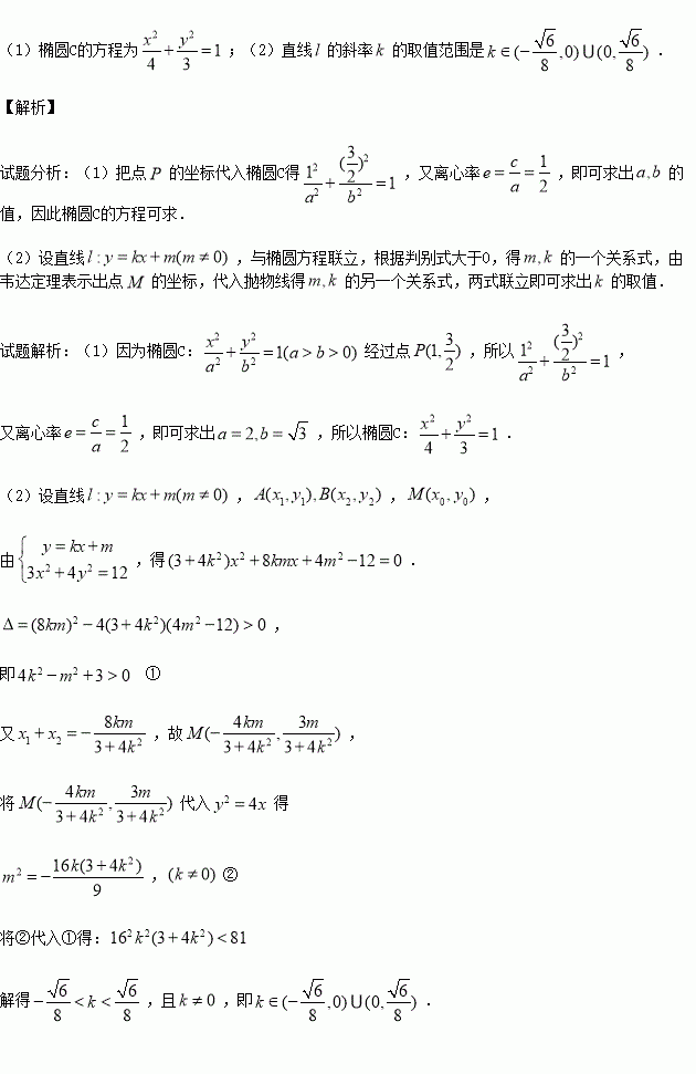 与椭圆C交于A,B两点,若AB的中点M在抛物线E: