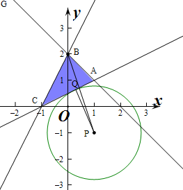 分析 作出不等式度对应的平面区域,利用两点间的距离关系进行求解,即可得到结论.