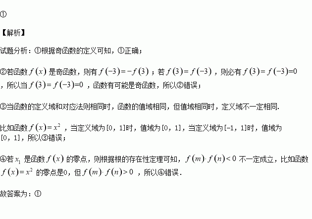 不是奇函数;③对应法则和值域相同的两个函数的定义域也相同;④若
