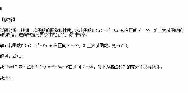 (2014秋•龙口市校级期末)“m=1”是“函数f(x)=x2﹣6mx+6在区间(﹣∞,3]上为减函数”的( )