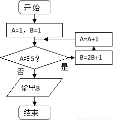 若某程序框图如图所示,则该程序运行后输出的B等于 ( )