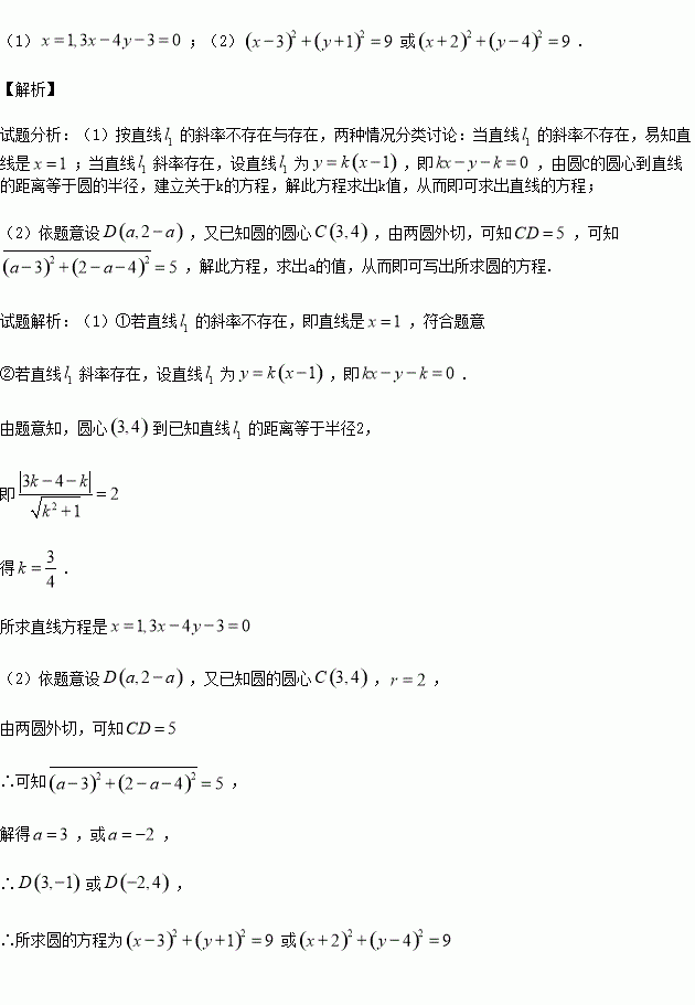 (1)若直线与圆相切,求直线的方程;