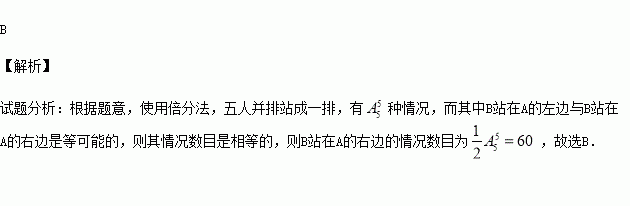 A,B,C,D,E五人并排站成一排,如果B必须站在A的右边(A,B可以不相邻),那么不同的排法共有( )