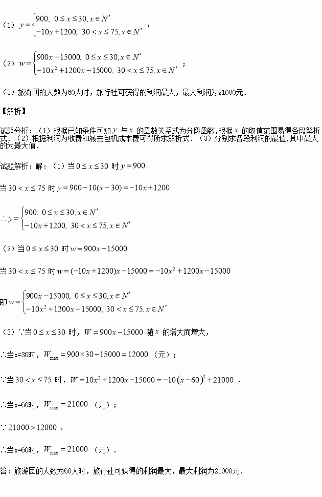 £¨3£©ÄÇôÂÃÓÎÍŵÄÈËÊýΪ¶àÉÙʱ£¬ÂÃÐÐÉç¿É»ñµÃµÄÀûÈó×î´ó£¿