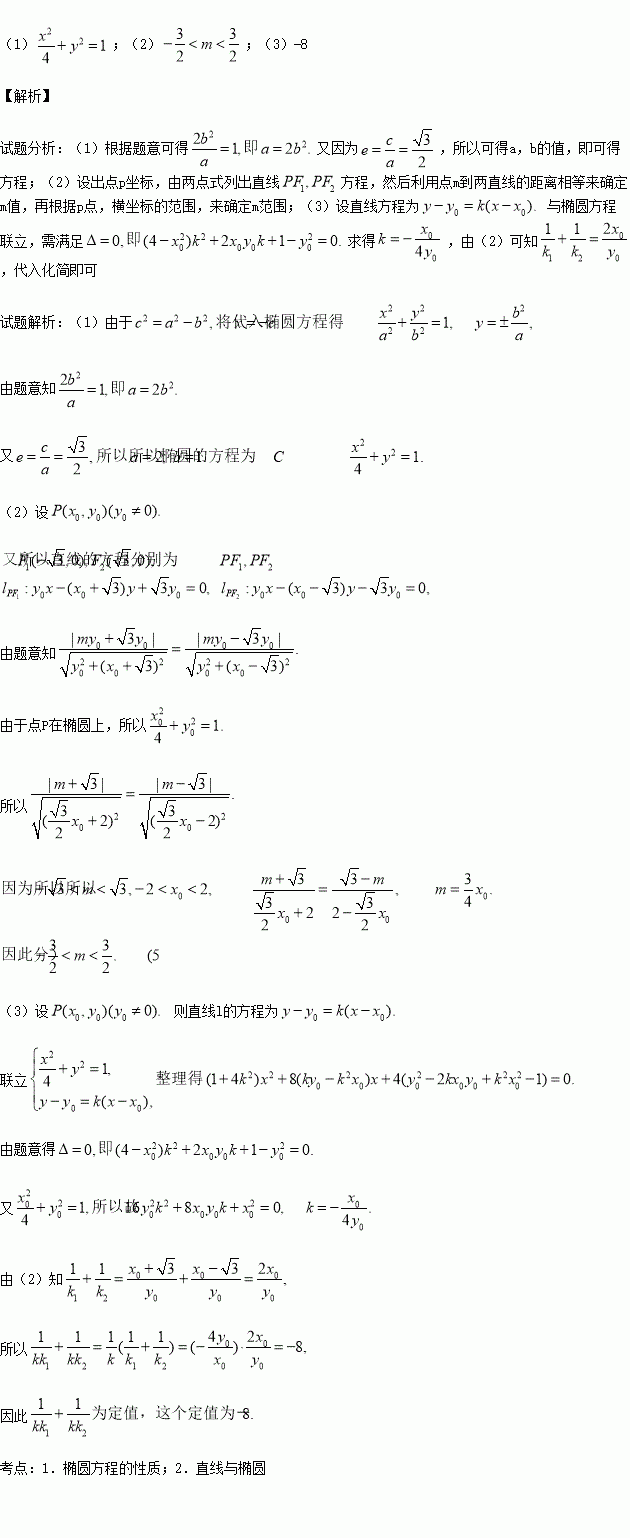(2)点P是椭圆C上除长轴端点外的任一点,连接PF1、PF2,设∠F1PF2的角平分线PM交C的长轴于点M(m,0),求m的取值范围.