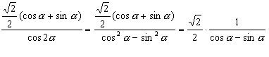 已知α是第一象限的角,且cosα=,求的值。