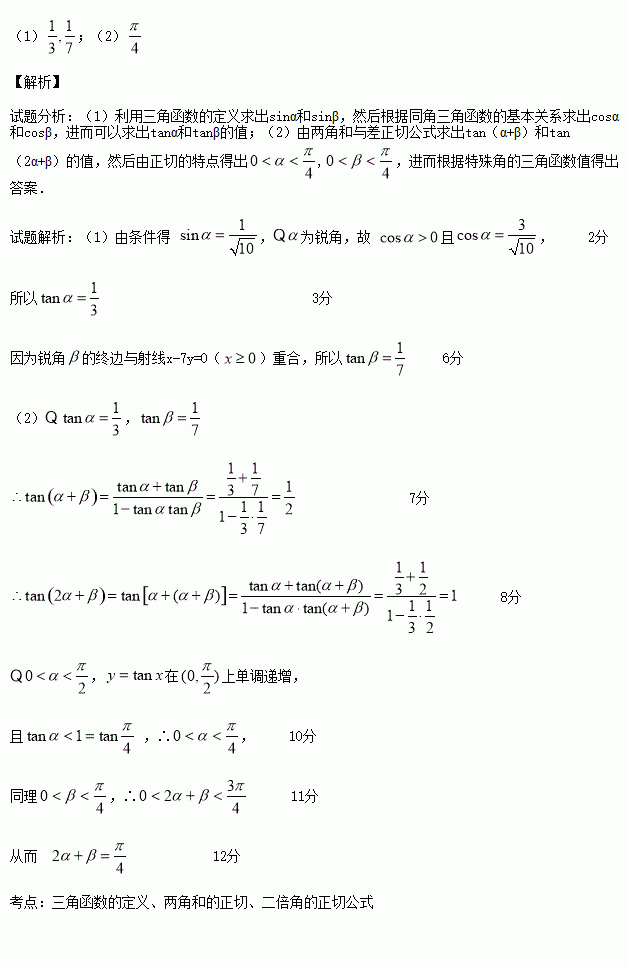 的终边与单位圆在第一象限交于点A,且点A的纵坐标为