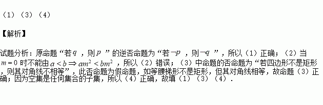 (3)“矩形的两条对角线相等”的否命题是假命题;