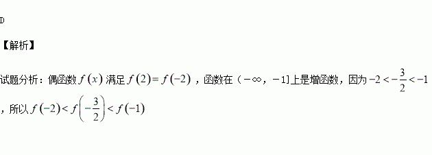 若偶函数f(x)在(-∞,-1]上是增函数,则下列关系式中,成立的是( )