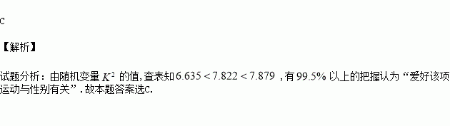 D.有99%以上的把握认为“爱好该项运动与性别无关”