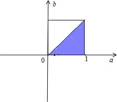 分析:本题考查的知识点是几何概型的意义,关键是要找出(0,1)上产生两个随机数a和b所对就图形的面积,及方程有实根对应的图形的面积,并将其代入几何概型计算公式,进行求解.
