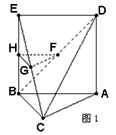 | (Ⅰ)证明:证法一:取BE的中点H,连结HF、GH,(如图1) ∵G、F分别是EC和BD的中点, ∴HG//BC,HF//DE, 又∵ADEB为正方形, ∴DE//AB,从而HF//AB, ∴HF//平面ABC,HG//平面ABC,HF∩HG=H, ∴平面HGF//平面ABC, ∴GF//平面ABC。 |