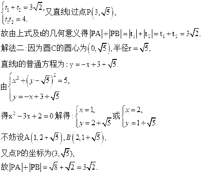 (t为参数).在极坐标系(与直角坐标系xOy取相同的长度单位,且以原点O为极点,以x轴正半轴为极轴)中,圆C的方程为![]()