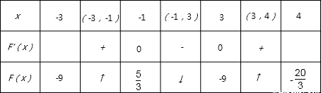 由此可知:F(x)在(-3,-1)、(3,4)上是增函数,在(-1,3)上是减函数.