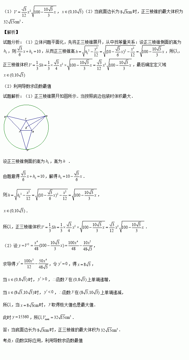 的圆形包装纸包装.要求如下:正三棱锥的底面中心与包装纸的圆心重合,包装纸不能裁剪,沿底边向上翻折,其边缘恰好达到三棱锥的顶点,如图所示.设正三棱锥的底面边长为