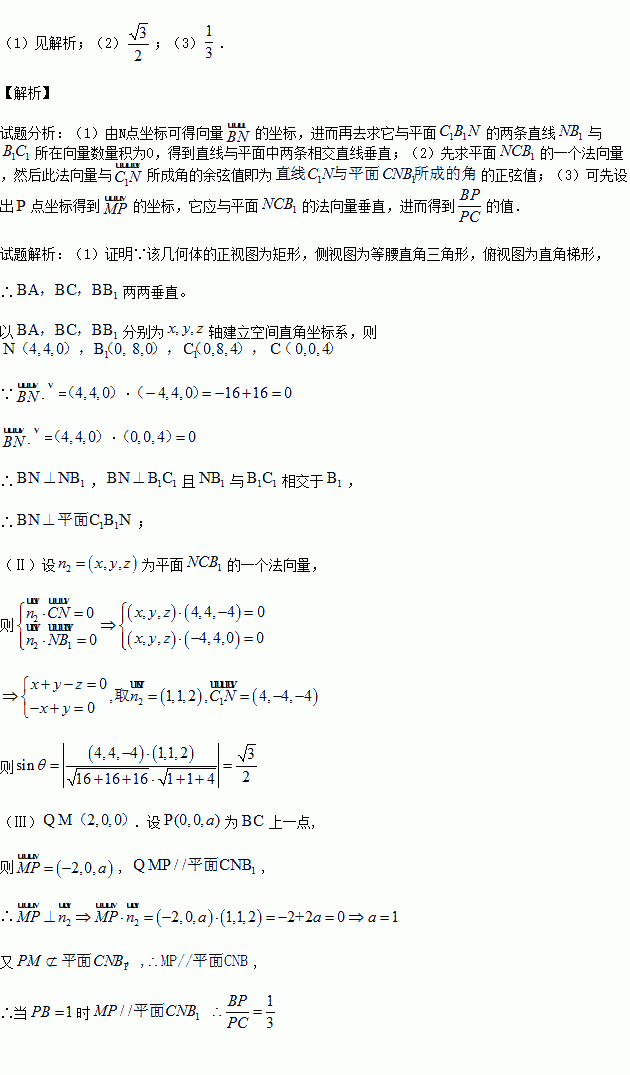 已知某几何体的直观图和三视图如下图所示,其正视图为矩形,侧视图为等腰直角三角形,俯视图为直角梯形.