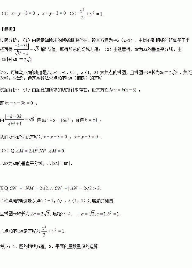 为圆C上一动点,点P在AM上,点N在CM上,且满足