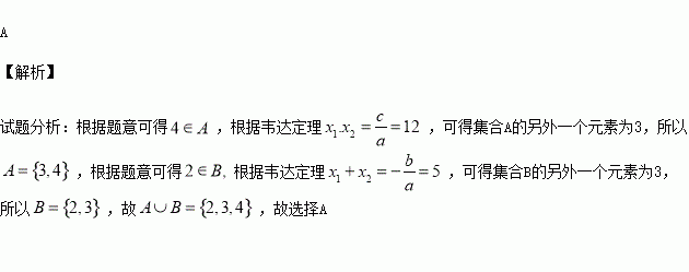 已知U=R,A={x|x2+px+12=0},B={x|x2-5x+q=0},若(∁UA)∩B={2},(∁UB)∩A={4},则A∪B=( ).