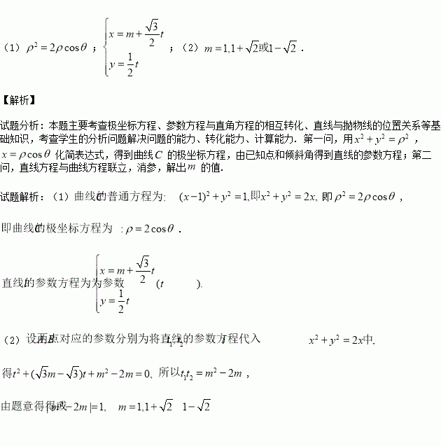 (Ⅱ)若直线l与曲线C相交于A,B两点,且|PA|·|PB|=1,求实数m的值.