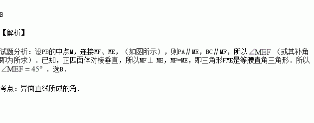 , E、F是AB和PC的中点,则异面直线PA与EF所成的角为( )