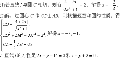 (2)当直线l与圆C相交于AB两点,且时,求直线l的方程.